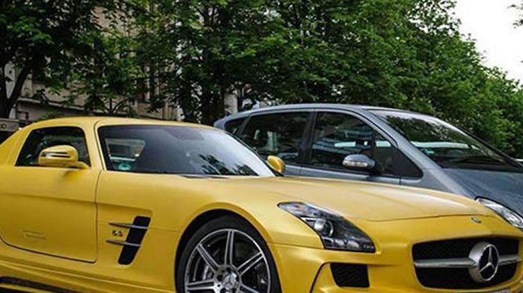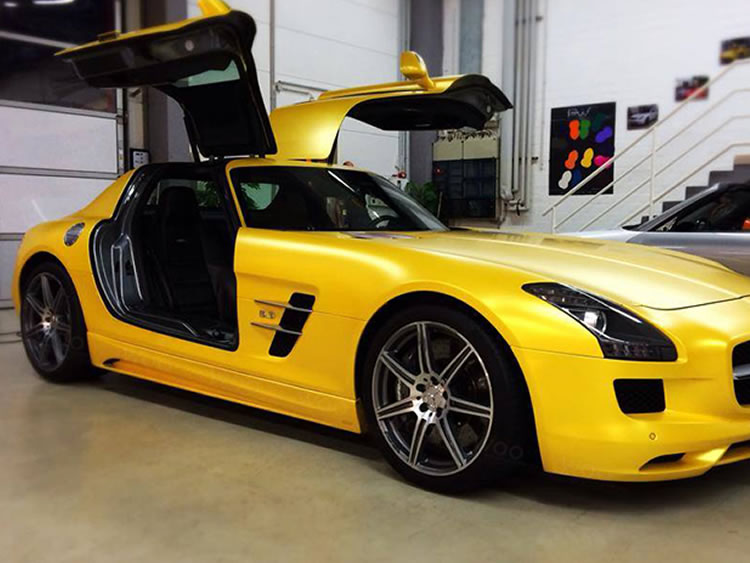 醉美车型!奔驰SLS “电光黄”车身改色贴膜